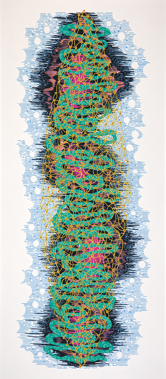 Genus 25, 2019, acrylic and flashe on paper, 72”h x 32”w